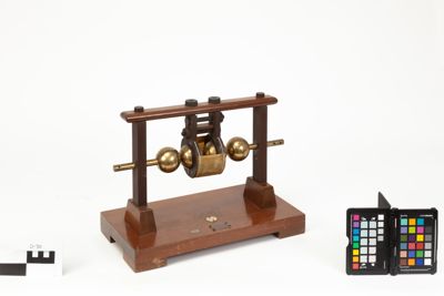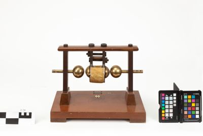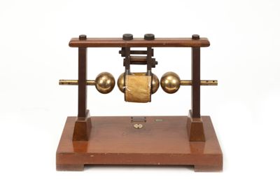 Una base in legno reca due montanti in ebanite collegati da una traversa superiore in legno. Nei montanti sono inseriti due elettrodi con terminanti con due sfere d'ottone. Nello spazio compreso tra queste due sfere sono inserite altre due sfere dello stesso diametro e materiale, racchiuse in una struttura in ebanite imperniata nella tarversa superiore in legno del telaio. Un foglio ricurvo di pergamena è fissato alla struttura in ebanite grazie ad apposite funicelle, in modo da avvogere parzialmente la coppia di sfere centrali. In questo modo le sfere si trovavano in un recipiente impermeabile in cui veniva versato dell'olio di vaselina.