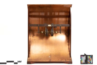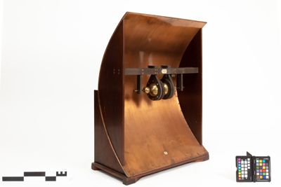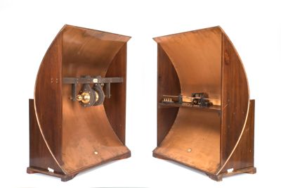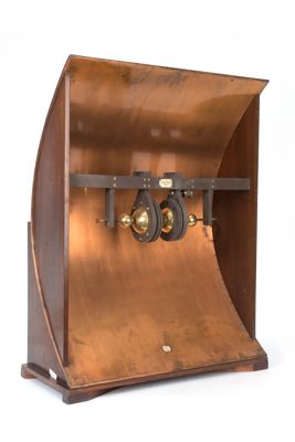 Questa copia, eseguita dalle Officine Galileo (?) di Firenze su commisione CNR (presidenza Marconi) per l'Esposizione Universale di Chicago del 1933, riproduce uno dei primi modelli di trasmettitore utilizzati da Guglielmo Marconi (1896-1897). E' costituito da un oscillatore di Righi a quattro sfere in ottone, montato su di un supporto in ebanite, e da uno specchio parabolico in rame sostenuto da una struttura in legno e metallo.