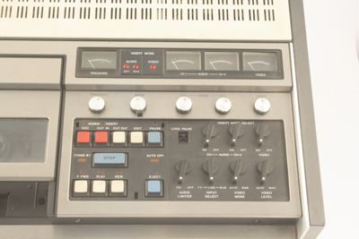 A destra si hanno i tasti per l'uso del videoregistratore: registrazione, inserimento automatico, canali audio, pausa, avanzamento, stop, avvio, riavvolgimento, espulsione. Inoltre si hanno comandi per la selezione dei canali (audio, CH1, CH2), livelli audio e video, tracking, con relative scale di lettura e spie.