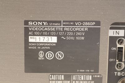 SONY U-matic model n° VO-2860P VIDEOCASSETTE RECORDER AC 100/110/120/127/220/240 V - 50 Hz 160W n° 11731 MADE IN JAPAN (commerciale/ documentaria)