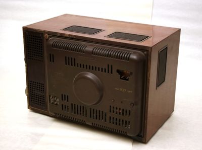 Il retro è chiuso da un pannello in metallo e plastica, forato per l'aerazione. Sul retro si hanno i connettori per le antenne UHF e VHF, per il cavo di alimentazione e altre viti di regolazione per linearità orizzontale, fuoco, ampiezza orizzontale.