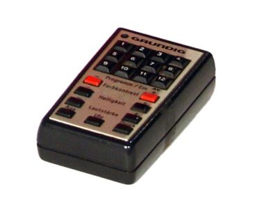 E' inoltre presente un telecomando a raggi infrarossi in plastica nera con una placca metallica sul fronte. Sul telecomando si hanno i tasti per la selezione dei programmi (da 1 a 12), per la commutazione ciclica dei programmi e dei canali, per la regolazione del contrasto colore, della luminosità, del volume. Sul retro si ha il vano batterie (per 5 batterie da 1,5V).