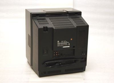 Sul retro, forato per l'aerazione, si hanno una presa per antenna, coppie di boccole per collegamenti audio e video, una manopola per la regolazione della frequenza verticale, un interruttore generale di accensione. Dal retro fuoriesce il cavo di collegamento alla rete elettrica.