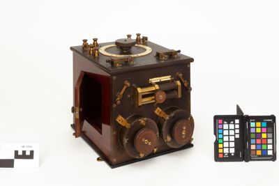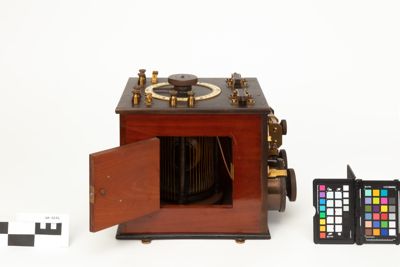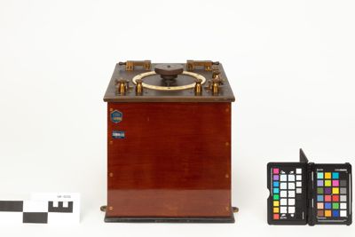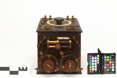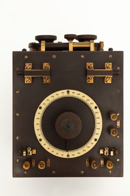 radiogoniometro Marconi-Bellini -Tosi, accoppiato al ricevitore a cristallo di carborundum con numero di inventario IGB 2233. Esemplare donato dalla Marconi's Wireless Telegraph Company al CNR in occasione dell'Esposizione Universale di Chicago del 1933, "A Century of Progress", che intendeva celebrare il progresso scientifico e tecnologico.
