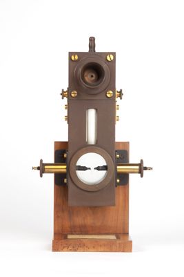 microfono idraulico di Quirino Majorana. basato sulla variazione di resistenza di un filo conduttore sottoposto all'azione delle onde sonore. Donato al CNR in occasione dell'Esposizione Universale di Chicago del 1933, "A Century of Progress", che intendeva celebrare il progresso scientifico e tecnologico