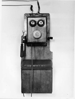 Questo apparecchio è un telefono di tipo Gerosa-Western Electric Co. Nel 1874 i fratelli Gerosa avevano fondato il primo stabilimento italiano per la produzione di apparecchi elettrici e alla fine del 1881 realizzarono il primo esperimento telefonico a Milano tra il Municipio e la caserma dei Vigili del Fuoco. Gli apparecchi utilizzati erano stati realizzati dopo una visita di Edoardo ed Emilio Gerosa negli Stati Uniti. Nel 1909 il loro stabilimento divenne Western Electric Italiana (le origini dell'Alcatel Face).