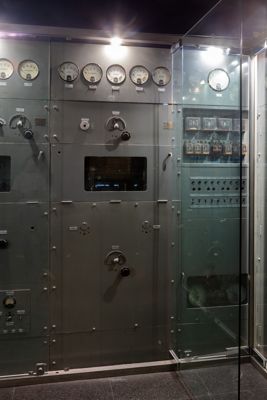 Complesso trasmittente per radiodiffusione di marca RCA (Radio Corporation of America), parte della stazione di broadcasting (trasmissione circolare) tuttora presente vicino a Siziano (Pavia). Si tratta di una porzione dell'apparato tecnico da 50 kW (valore corrispondente alla potenza d'antenna), che è stato in funzione dall'apertura della stazione, il 26 ottobre 1932, fino al 1969, anno in cui fu sostituito con un più nuovo apparecchio radiotrasmittente ad onde medie da 50 kW della Marconi.