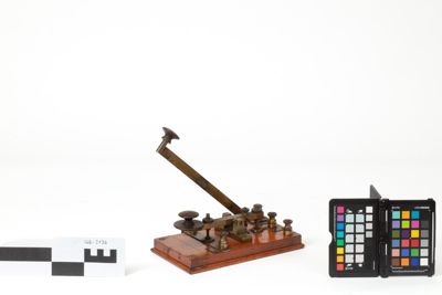 Il tasto o chiave (Key) è composto da una base rettangolare in legno su cui sono fissati 4 serrafilo in ottone (2 coppie) e il fulcro della leva del tasto Morse anch'essa in ottone. Sul lato sinistro è presente una leva d'ottone la cui posizione (abbassata o alzata) determina quale coppia di serrafilo è attiva.