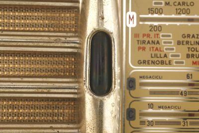 Sotto all'altoparlante è inserita una manopola per l'accensione/spegnimento e per la regolazione del volume, sotto alla scala di sintonia un'altra manopola permette la regolazione delle frequenze radio.
