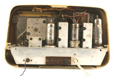 Il lato posteriore è caratterizzato da grossi fori circolari e fessure rettangolari per il raffreddamento dei componenti interni. All'interno è presente un circuito supereterodina a quattro valvole e un raddrizzatore metallico.