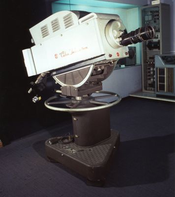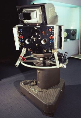 La telecamera è posta su un carrello in metallo di grosse dimensioni con tre rotelle per agevolare lo spostamento ed alcuni connettori elettrici. La ruota posta in orizzontale permette la rotazione della telecamera attorno ad un asse verticale.