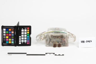 apparecchio telefonico da tavolo in materiale trasparente