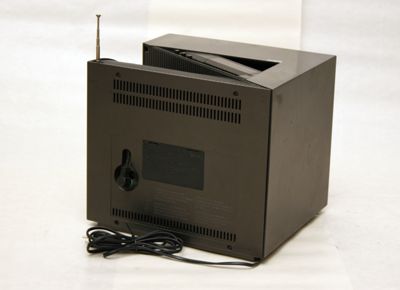 Sul retro si ha una presa per antenna VHF e UHF e fuoriesce il cavo di collegamento alla rete elettrica.