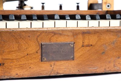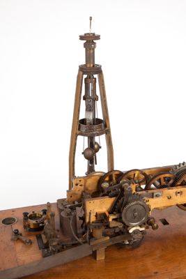 Sistema elettromeccanico per la comunicazione a distanza dotato sia della parte trasmittente, che di quella ricevente. La parte ricevente è fornita di una ruota munita di caratteri tipografici (ruota dei tipi) sincronizzata, tramite un dispositivo centrifugo ad orologeria, allo scorrimento di un nastro di carta su cui viene stampato in chiaro il messaggio. La forza motrice è data dalla caduta di un grave e il sistema di bloccaggio del meccanismo è a pedale; entrambi questi dispositivi sono mancanti.
