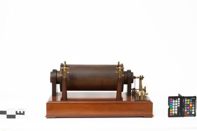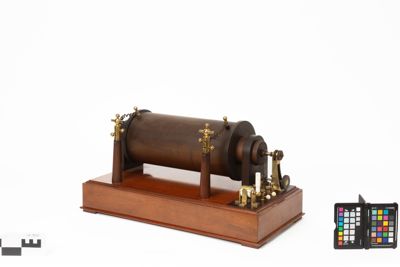 È un modello di rocchetto di induzione. La tipologia è stata inventata a metà dell'Ottocento da Heinrich Ruhmkorff (1803-1877), esperto tedesco di elettromeccanica, costruttore di strumenti scientifici.
