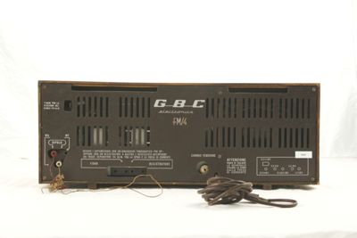 Il retro è chiuso da un pannello forato e presenta una presa per giradischi esterno o registratore a nastro, le boccole per antenne FM e AM e per il collegamento TV, una variatore di tensione.