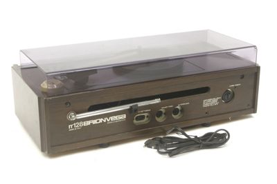 Il giradischi ha piano in metallo, con piatto in gomma e braccio in metallo con testina rivelatrice piezoelettrica. In posizione di riposo il braccio è fissato al centro del piatto. Si ha inoltre un selettore per la velocità di rotazione del disco (0, 33, 45, 78 giri). E' presente il riduttore in plastica per l'inserimento dei dischi 45 giri.