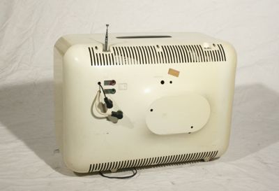 Sul retro, sagomato e con griglie per l'aerazione, si hanno i connettori per le antenne UHF e VHF (75 Ohm) e una vite per la regolazione verticale dell'immagine. Fuoriesce il cavo di alimentazione per il collegamento alla rete elettrica.