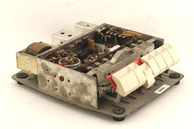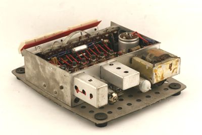 All'interno è presente il circuito elettrico con due valvole ECH81-EF89, un diodo a cristallo e un raddrizzatore metallico.