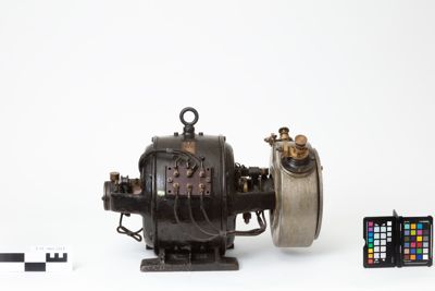 Apparecchio per stazione trasmittente a bordo di navi composto essenzialmente dall'accoppiamento di un motore elettrico e un disco rotante.
