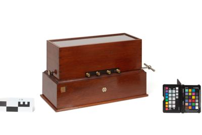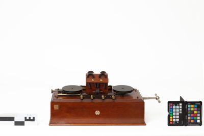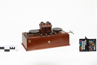 E' un Detector Magnetico Marconi del tipo industriale (o definitivo) costruito dalla Marconi Wireless Tel3graph Company Ltd. di Londra. E' composto da una scatola in legno all'interno della quale risiede un motore a molla caricabile dall'esterno attraverso una manovella.