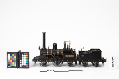Questo modello didattico rappresenta la locomotiva la Lombarda, la prima a essere utilizzata sull'Imperial-Regia Privilegiata Strada Ferrata da Milano a Monza. Inaugurata il 17 agosto 1840, fu la seconda ferrovia a essere costruita in Italia (dopo la Napoli Portici)