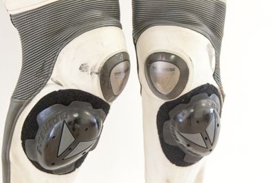 Dotata di knee sliders, gobba aerodinamica, protezioni in fibra di carbonio e placca di titanio per ginocchia e spalle