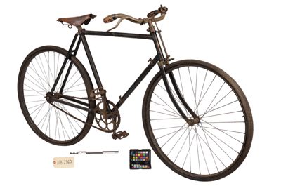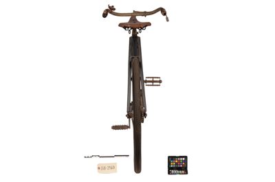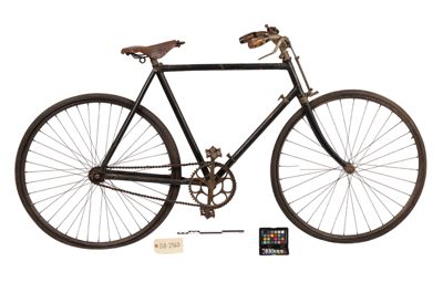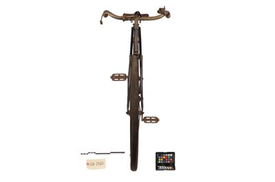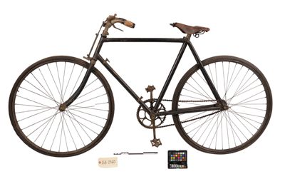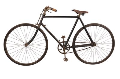 Bicicletta da turismo con telaio tubolare a trapezio in metallo verniciato di nero brillante, sprovvista di parafanghi. La bicicletta monta una sella in pelle con due molle posteriori. Il manubrio dritto, con impugnature rivolte verso l'alto e manopole in sughero rivestito di celluloide nera; la leva sulla parte destra del manubrio comanda a bacchetta il freno a pattino sulla ruota anteriore. Il funzionamento si basa su una trasmissione a catena sulla ruota posteriore a scatto libero, messa in moto da due pedali in metallo. La bicicletta poggia su ruote con cerchi e raggi tangenti in metallo e gomme pneumatiche; le ruote, pur di uguale dimensione, hanno un numero diverso di raggi: 32 per la ruota anteriore e 40 per la ruota posteriore. Il tubo obliquo è stato equipaggiato con un supporto portapompa.