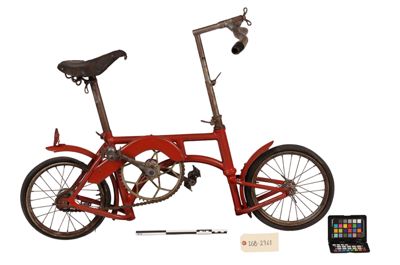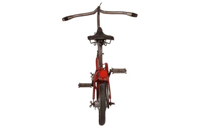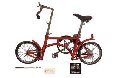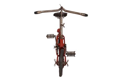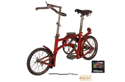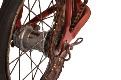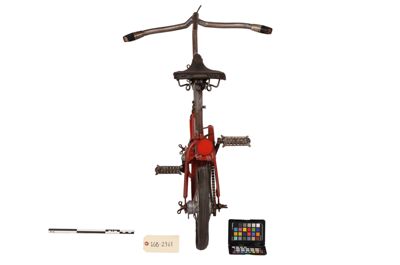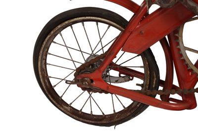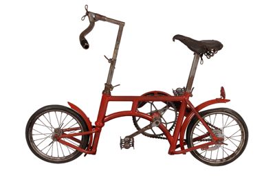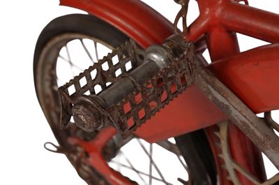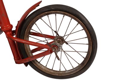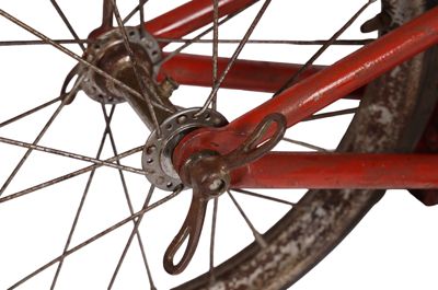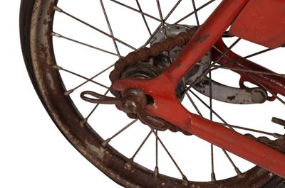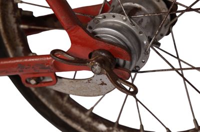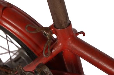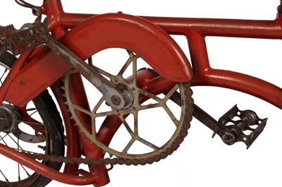 Bicicletta di piccole dimensioni con telaio tubolare, forcella, carter e parafanghi verniciati di rosso, mentre il cannotto della sella e il manubrio sono cromati; il tubo del telaio che unisce il cannotto dello sterzo al nodo del movimento centrale presenta un andamento curvilineo. Questa bicicletta permette la regolazione, per mezzo di dadi a galletto, dell'altezza del cannotto della sella e del manubrio; il manubrio inoltre presenta la possibilità di regolare anche l'ampiezza delle impugnature, provviste di manopole in celluloide. Il veicolo monta una sella molleggiata e imbottita, rivestita di pelle. Il freno agisce sulla ruota posteriore ed è comandato a contropedale. La bicicletta poggia su due ruote di uguale dimensione, dotate ognuna di 24 raggi tangenti e di gomme pneumatiche. La forcella dà la possibilità di girare all'indietro la ruota anteriore. Sul parafango posteriore è sistemato un rifrangente rosso di forma circolare. L'apparato motore è costituito da una trasmissione a catena sulla ruota posteriore.