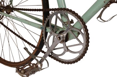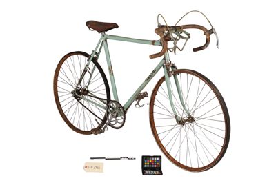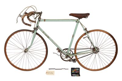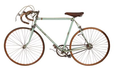 Questa bicicletta, appartenuta a Fausto Coppi, presenta le classiche caratteristiche di una bicicletta sportiva. Interessante la presenza del cambio, introdotto da Campagnolo negli anni '30, che permetteva di cambiare il rapporto di trasmissione durante la marcia; in precedenza, il ciclista era obbligato a fermarsi per invertire la ruota, dotata di pignoni su entrambi i lati. La datazione di questa bicicletta è basata sulla presenza di questo modello di cambio, introdotto nel 1946. La presenza di cerchi in legno aveva la funzione, in questo caso, di evitare il surriscaldamento dello pneumatico in modo da garantire prestazioni più competitive.