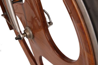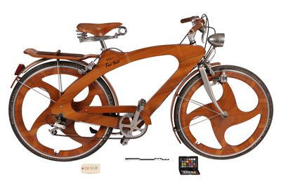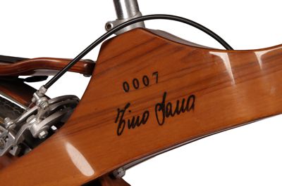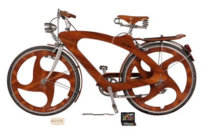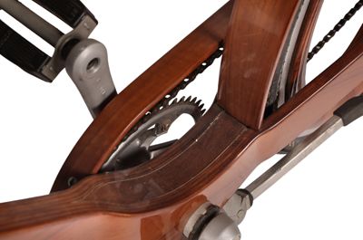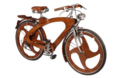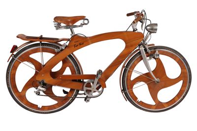 Telaio a seduta verticale a cui sono vincolate due ruote allineate una dietro l'altra; è dotato di un sistema meccanico per la trasmissione della potenza alla ruota motrice. Sulla ruota posteriore è montato un meccanismo di ruota libera, che permette alla bicicletta di avanzare per inerzia senza dover muovere i pedali. E' presente un cambio di velocità, costituito da ingranaggi multipli, sulla ruota posteriore. Lo sterzo è basato su una forcella che regge la ruota anteriore, incernierata in un canotto leggermente inclinato in avanti, solidale con un manubrio in legno munito di manopole realizzate in pelle. Lo sterzo e la forcella sono in alluminio anodizzato. I freni sono posti in prossimità dei cerchioni mentre i comandi dei freni sono sul manubrio. Per ridurre l'attrito delle parti in movimento, vengono utilizzati cuscinetti a sfere. I cuscinetti sono presenti anche sul movimento centrale, sui pedali, sullo sterzo e sul meccanismo di ruota libera. La bicicletta è dotata di sei rapporti del cambio Shimano, di parafango anteriore e posteriore in legno, di paracatena in legno, di due luci a dinamo (quella anteriore di colore rosso e quella posteriore munita di due lampade e di un deviatore), di portapacchi in legno, di due pneumatici delle ruote posti sui cerchioni in alluminio posti a loro volta su cerchioni in legno a quattro raggi, di una sella in cuoio Brooks ammortizzata da due molle in filo di acciaio intrecciato posteriori e da una anteriore e da due pedali con catadiottri. Realizzata completamente in legno ad eccezione dei meccanismi di movimentazione e di giunzione, la bici è costituita da parti composte da strati lineari e incrociati di frassino e faggio e da parti meccaniche in alluminio, ancorate al telaio con colle ureiche ad alta resistenza di tenuta. E' munita di cavalletto in alluminio. Il materiale del telaio è la composizione di legno di faggio e di frassino a strati pressati ad alta frequenza con inserti di legno duro. La componentistica è progettata appositamente per ancorare al legno le singole funzioni dei movimenti, come i mozzi delle ruote, i forcellini posteriori ed altri particolari inseriti nel telaio. La bicicletta è numerata con punzonatura a fuoco.