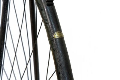 Biciclo da corsa, con telaio tubolare in ferro e forcella in lamiera. La sella, sospesa elasticamente su una balestra fissata sul tubo obliquo del telaio è costituita da una lamina di metalli, originariamente rivestita di pelle. Il piccolo manubrio ribassato presenta manopole in legno. Il biciclo è sprovvisto di impianti frenanti. Il funzionamento si basa su due pedali registrabili in metallo, applicati alla ruota anteriore. Le due ruote, entrambe con cerchio e raggi in metallo, sono concepite per battistrada in gomma piena; la ruota anteriore presenta 44 raggi radiali, mentre la ruota posteriore conta 18 raggi.