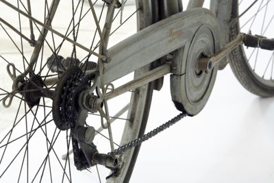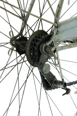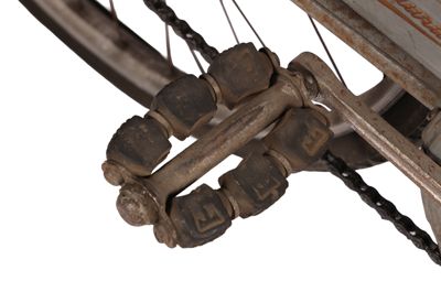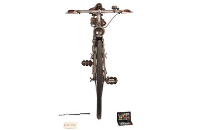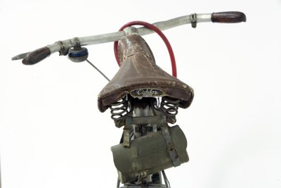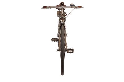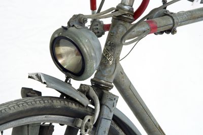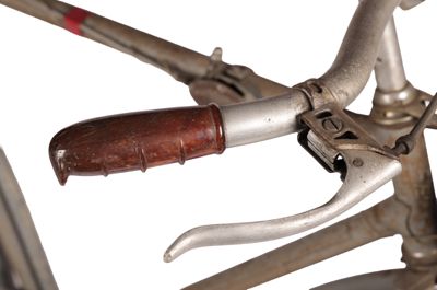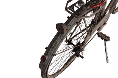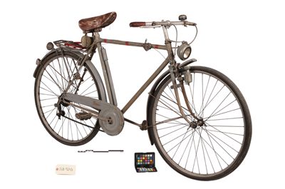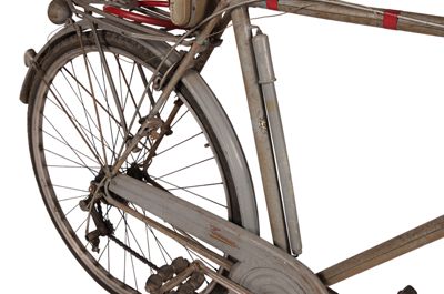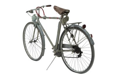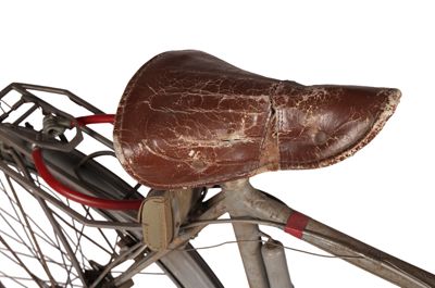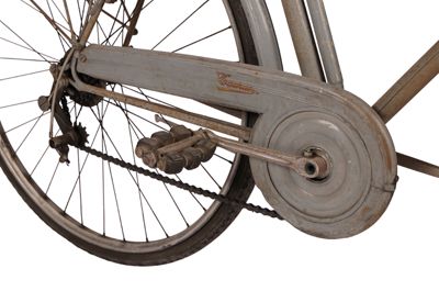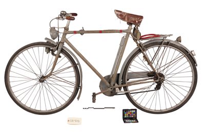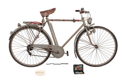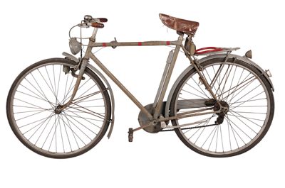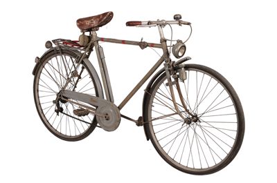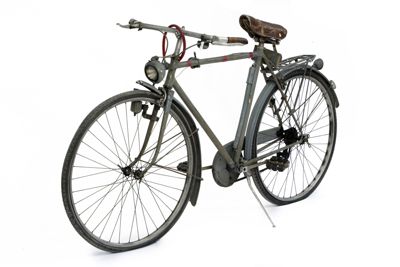Bicicletta turistica da uomo, con telaio a trapezio in acciaio, parafanghi e carter verniciati di grigio e decorati con filettature nere. La bicicletta monta una sella molleggiata in pelle, con cannotto regolabile in altezza; sotto la sella è sistemato un borsello portaccessori. Il manubrio dritto da turismo, anch'esso regolabile in altezza, presenta le manopole in celluloide e le due leve comandanti a filo i freni a ganasce; il manubrio inoltre è accessoriato con un campanello avvisatore. Il sistema di funzionamento si basa su una trasmissione a catena sulla ruota posteriore, messa in moto da due pedali ricurvi in acciaio con sei blocchetti di gomma recanti impressa la lettera T; il sistema è stato implementato con l'applicazione di un rocchetto a tre posizioni e di un cambio a puleggia mobile, azionato da una leva posizionata sul tubo orizzontale. La bicicletta poggia su ruote con cerchi e raggi in metallo e gomme pneumatiche, dotate ognuna di 36 raggi tangenti e fissate per mezzo di dadi a galletto; sul tubo piantone è sistemata una pompa portatile originale. Sul parafango posteriore è collocato un catadiottro; in un periodo successivo la bicicletta è stata dotata di fanale anteriore e fanalino di coda, alimentati per mezzo di una dinamo applicata alla ruota anteriore; il filo elettrico per l'alimentazione del fanalino di coda è fissato sul tubo orizzontale con del nastro adesivo di colore rosso. Il veicolo infine è dotato di portapacchi posteriore, di cavalletto centrale e antifurto sulla ruota posteriore.