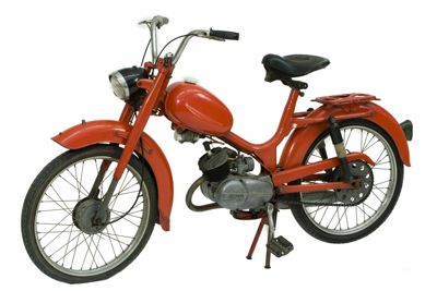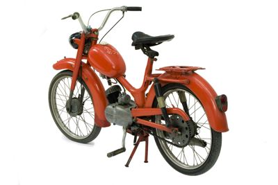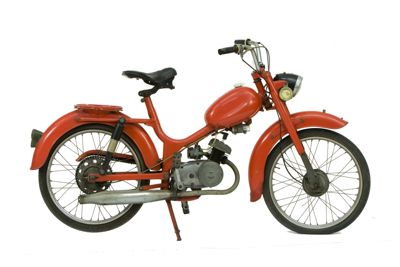 Ciclomotore con telaio tubolare, parafanghi e serbatoio verniciati di rosso. Al centro del telaio è montato un motore monocilindrico a due tempi, inclinato in avanti; il tubo di scarico è posto sul lato destro. Al di sopra del motore si trova il serbatoio del carburante, con tappo ad avvitamento in plastica bianca. Il ciclomotore è dotato di fanali anteriore e posteriore, la cui accensione è comandata da un commutatore posto sul manubrio; sul fanale anteriore è posizionato il quadrante del contachilometri e del tachimetro, con scala graduata da 0 a 80 km/h. Entrambe le ruote sono dotate di sospensioni: la ruota anteriore è collegata mediante una forcella telescopica, mentre la ruota posteriore è provvista di sospensione elastica. Sopra il parafango posteriore è situato il portapacchi. Il ciclomotore è sorretto da un cavalletto reggimacchina centrale. Sul lato superiore del serbatoio si trova un adesivo raffigurante un cavallo. Al manubrio è attaccato un portadocumenti in plastica grigia, sul cui lato posteriore è raffigurato San Cristoforo.
