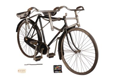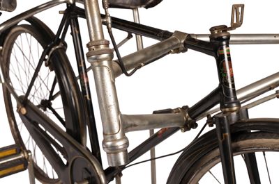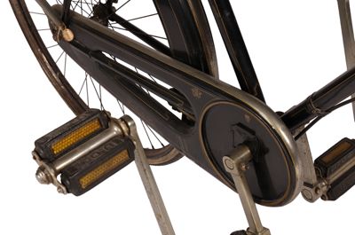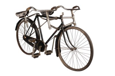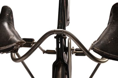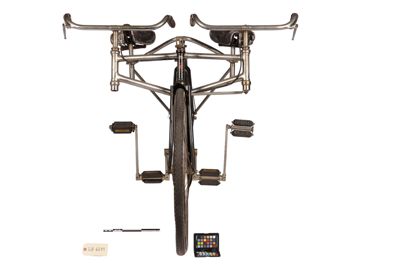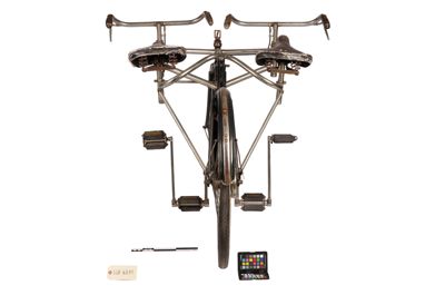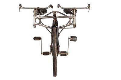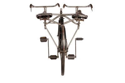 Bicicletta biposto con telaio tubolare a trapezio in acciaio e parafanghi alettati e carter in lamiera, verniciati di nero brillante con decorazioni a filetto dorato. La bicicletta è equipaggiata con due manubri da strada paralleli con manopole in corno, fissati al tubo orizzontale e al tubo obliquo; soltanto il manubrio sinistro comanda lo sterzo mentre il manubrio destro è fisso. L'impianto frenante è costituito da due freni a pattino sulla ruota posteriore, azionati ognuno a filo da una leva posta su entrambi i manubri. Il veicolo inoltre è provvisto di due selle molleggiate parallele, sorrette da un cannotto dotato di due bracci ricurvi. Il funzionamento della bicicletta si basa su una trasmissione a catena sulla ruota posteriore, azionata da due pedaliere applicate alle pedivelle del movimento centrale; il sistema costituito da corona, pignone e catena è completamente racchiuso dal carter; i pedali presentano travesini in gomma nera. La bicicletta poggia su ruote con cerchi e raggi in metallo, dotate di gomme pneumatiche; entrambe le ruote contano 36 raggi tangenti.