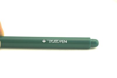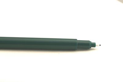 Oggetto a punta sintetica o a punta plastica poliacetalica estrusa. Il pennino estruso di colore verde scuro presenta una punta aguzza disegnata allo scopo di sfruttare il flusso di inchiostro sulle sue estremità e sui suoi lati. Il design si contraddistingue per la linea minimalista che determina un corpo meno allungato rispetto alla forma delle penne tradizionali; esso è sottile al punto giusto per permettere un'impugnatura ottimale. E' presente un tappo a forma di bombetta scelta per la sua essenzialità. Esso è caratterizzato da un bordino dentato: una rosa di sette piccoli aggetti realizzati al fine di rendere più facile l'appoggio su una superficie piana e per evitare che la penna si possa muovere. Una serie di piccoli fori è presente nel tappo. Sulla parte superiore del corpo vi è un'iscrizione e il simbolo dell'azienda produttrice colorati di bianco. Posizionato sull'estremità opposta del cappuccio, vi è un tappino posteriore anch'esso di colore verde scuro che presenta una lieve ondulazione.