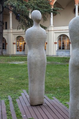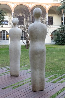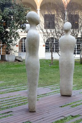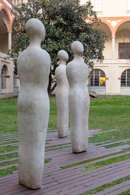 Nell'abbozzo di figure umane senza dettagli che si rifanno anche ai manichini di De Chirico, l'artista rileggeva il topos dei saggi custodi dell'antica civiltà greca, come il filosofo e matematico Talete. Rimosse dopo un danneggiamento e per lungo tempo non visibili, le sculture sono state recuperate su sollecitazione dell'Associazione Studentesca del Liceo Carducci e restaurate nel 2013 col sostegno di SEA.