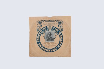 Disco inciso a Milano nel 1907 per la Gramophone Monarch Record, aria dall' Amleto di A. Thomas, "Nega se puoi la luce" con Maria Galvany. Disco con busta originale.