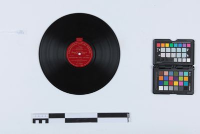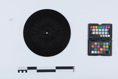 Disco in cornice, con incisione di Francesco Tamagno. Il brano inciso "O muto asil" รจ tratto dal Guglielmo Tell di G. Rossini.