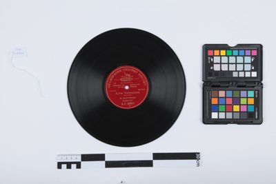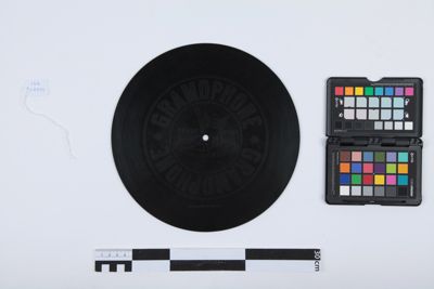 Disco (diametro 25 cm) della serie completa di 11 di incisioni effettuate a Varsavia da Mattia Battistini nel 1902, inclusa nell'album 2 della Collezione Caruso del cav. Luciano Pituello.