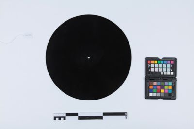 diametro: 35 cm (disco); altezza: 35 cm (busta); larghezza: 37,5 cm (busta)