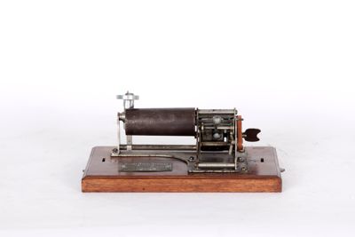 Sul lato sinistro del meccanismo di riproduzione è presente la chiave per l'avvolgimento della molla di caricamento, la quale aziona il meccanismo che fa ruotare il cilindro.