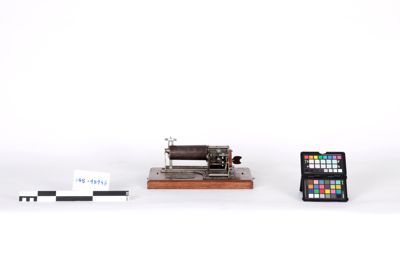 La targa con il nome del modello, le date dei brevetti e il marchio del produttore si trovano sulla base, dietro il cilindro, mentre sul lato del supporto per il cilindro vi è un altra iscrizione col nome della ditta produttrice.