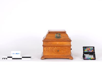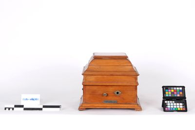 lunghezza: 34 cm (cofanetto); larghezza: 34 cm (cofanetto); altezza: 29 cm (cofanetto); diametro cm (tromba); altezza cm (tromba)