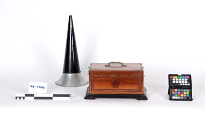 lunghezza: 23,5 cm (cassetta); larghezza: 35 cm (cassetta); altezza: 16,5 cm (cassetta); lunghezza cm (tromba)