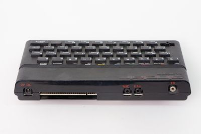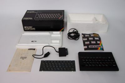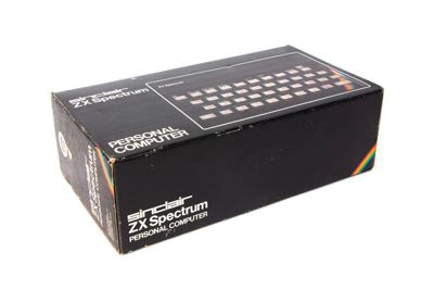 Home computer Sinclair ZX Spectrum con trasformatore, cavi, proteggi tasti, manuale istruzioni e scatola originale