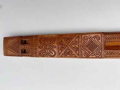 È un doppio flauto le cui canne vengono suonate contemporaneamente. La parte destra è dotata solitamente di quattro fori e ha un'intonazione più alta, mentre quella sinistra ha tre fori e ha un'intonazione più bassa. L'imboccatura a fischietto di ciascuna canna è realizzata con l'inserimento di una zeppa dello stesso tipo di legno. Pur essendo realizzato in un blocco unico tra le due canne, nella parte inferiore, è stato aperto uno spazio. Anche in questo caso, seguendo la tradizione, lo strumento è decorato con incisioni e decorazioni di vario genere geometriche e floreali.