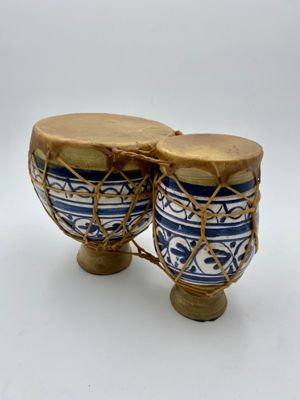 si tratta di uno strumento a percussione costituito da due vasi conici in ceramica, uno più grande e uno più piccolo, chiusi in alto da una pelle solitamente di capra assicurata e tenuta in tensione grazie a due strisce di budello. Altre strisce di budello tengono uniti i due vasi che solitamente sono decorati con motivi geometrici e floreali con colori intensi; in questo caso blu su fondo bianco.