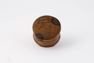 Scatola in legno contenente 67 oggetti di minuteria. Presenta un'iscrizione: "Brocha [...] d'argento 26 n. 24".