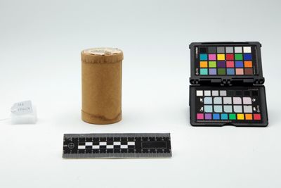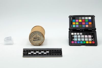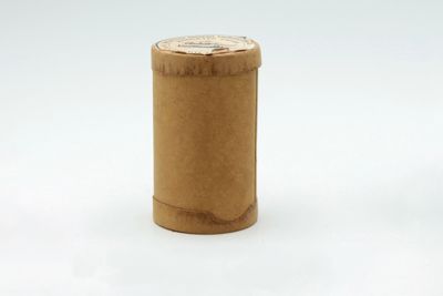 Cilindro incerato per fonografo in custodia originale, conservato in una scatola in legno e cartone per spedizioni postali (vedi IGB-17300).